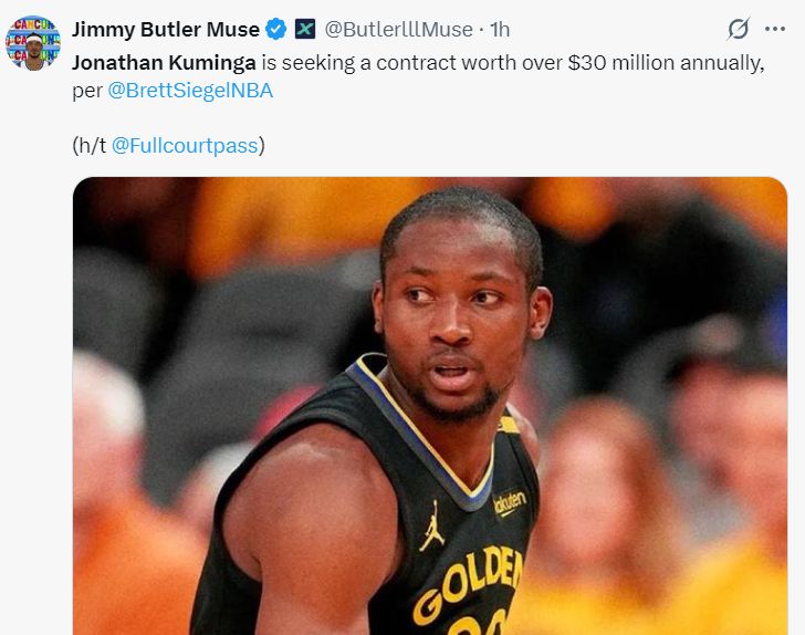 根据NBA记者BrettSiegel的报道,库明加的团队依旧在寻求均薪超过3000万的合同。