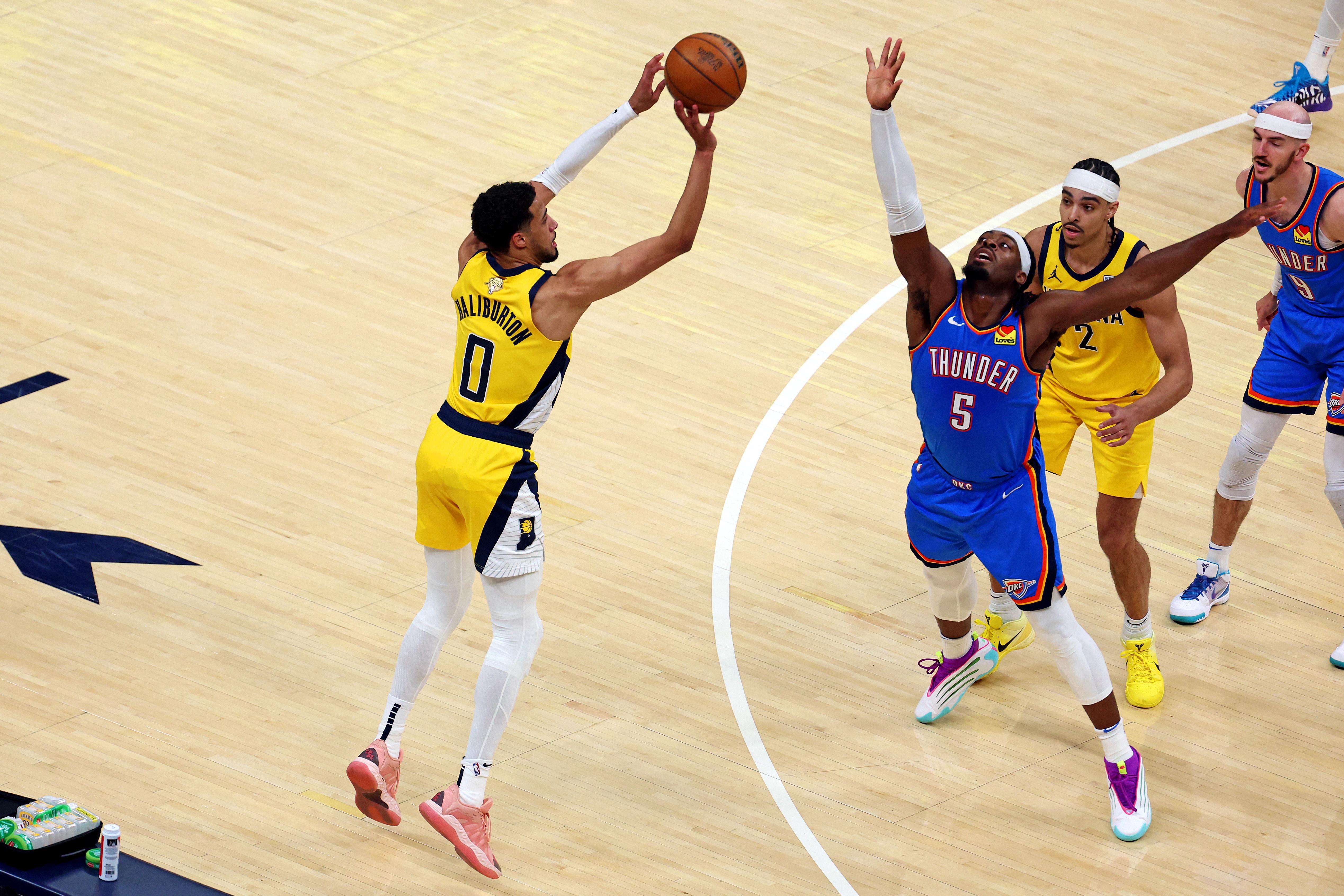 特纳接到泰瑞斯-哈利伯顿的助攻,在内线上篮得分。哈利伯顿和谢伊-吉尔杰斯-亚历山大这两位超级巨星后卫,都非常依赖内线球员作为扎实的掩护者,从而在进攻端为他们创造机会。